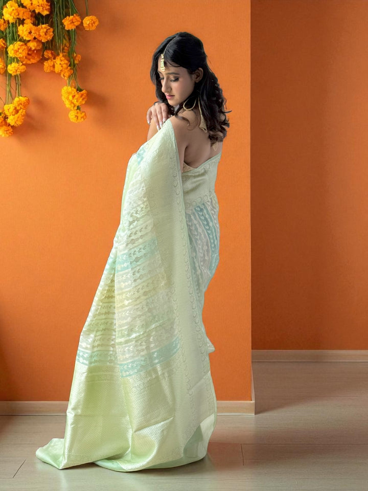 Any irregularities in the weave or design are not defects, but a hallmark of handcrafted excellence — making each saree uniquely beautiful.