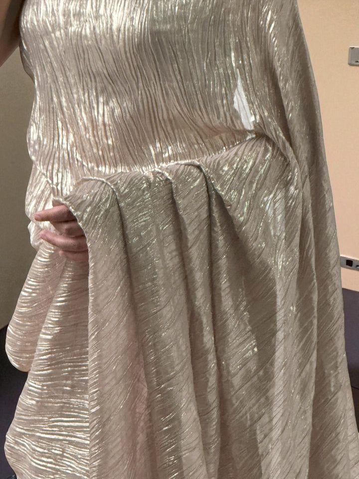 - Always iron on the reverse side or with a protective cloth to preserve the fabric's sheen.