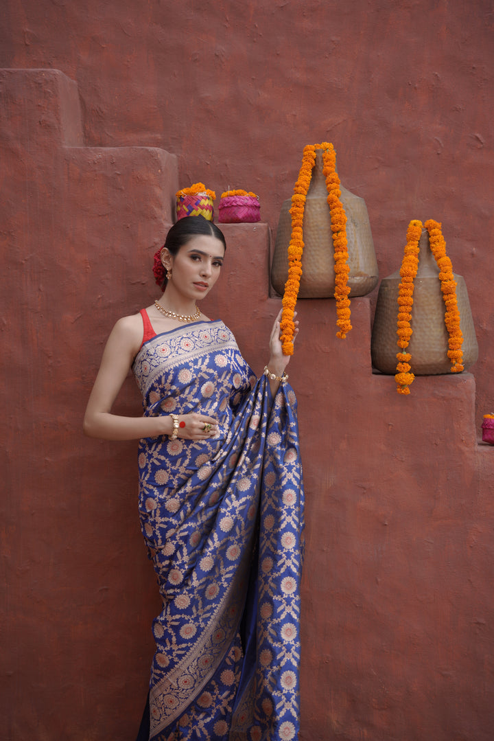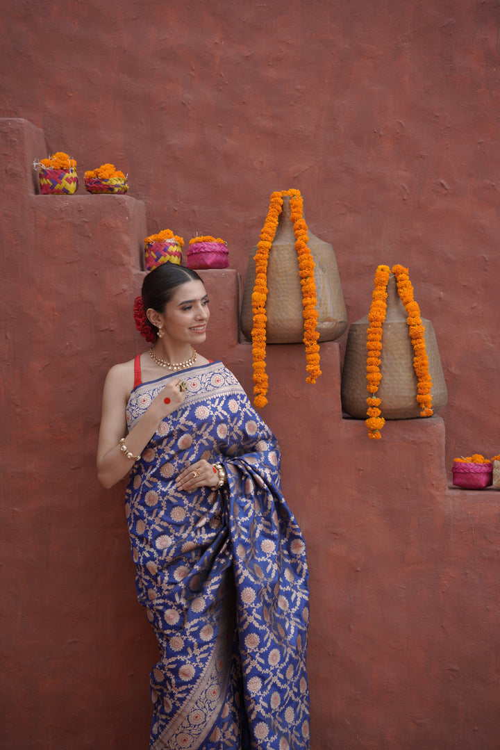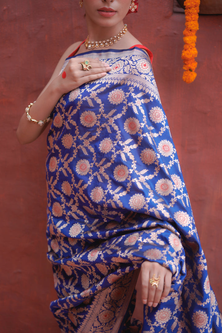 Cobalt Blue pure banarasi silk saree