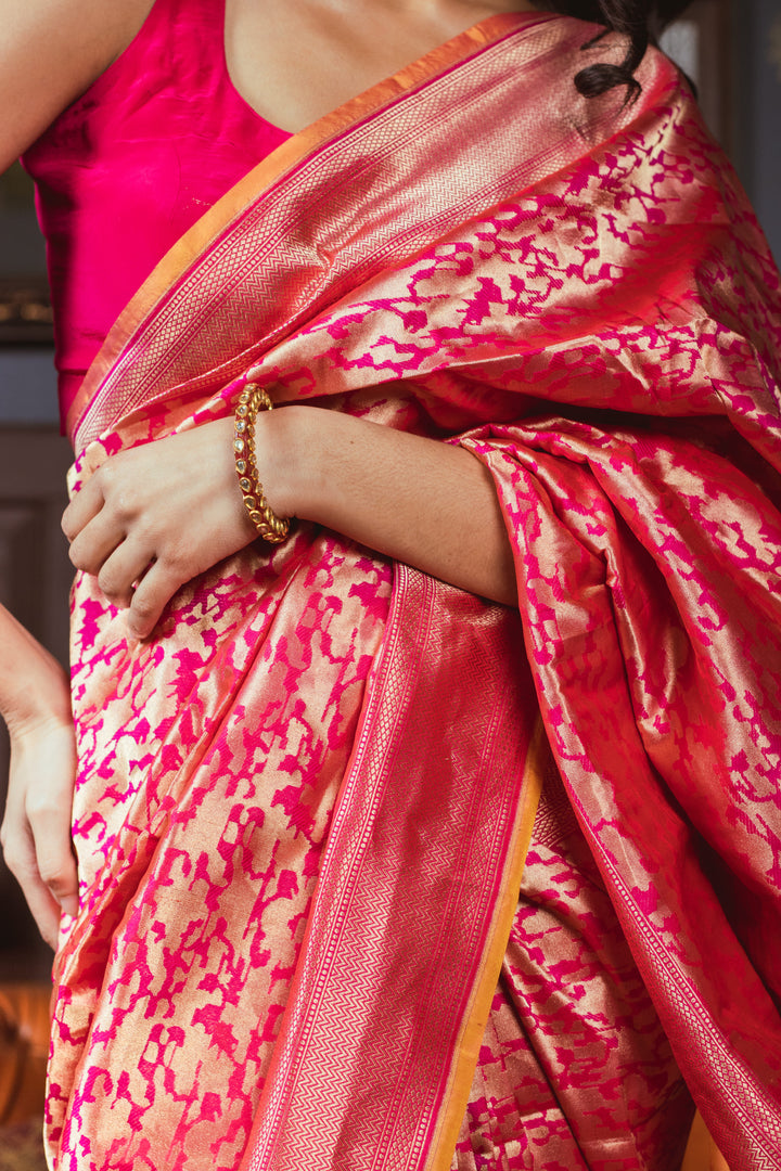 Any irregularities in the weave or design are not defects, but a hallmark of handcrafted excellence — making each saree uniquely beautiful.