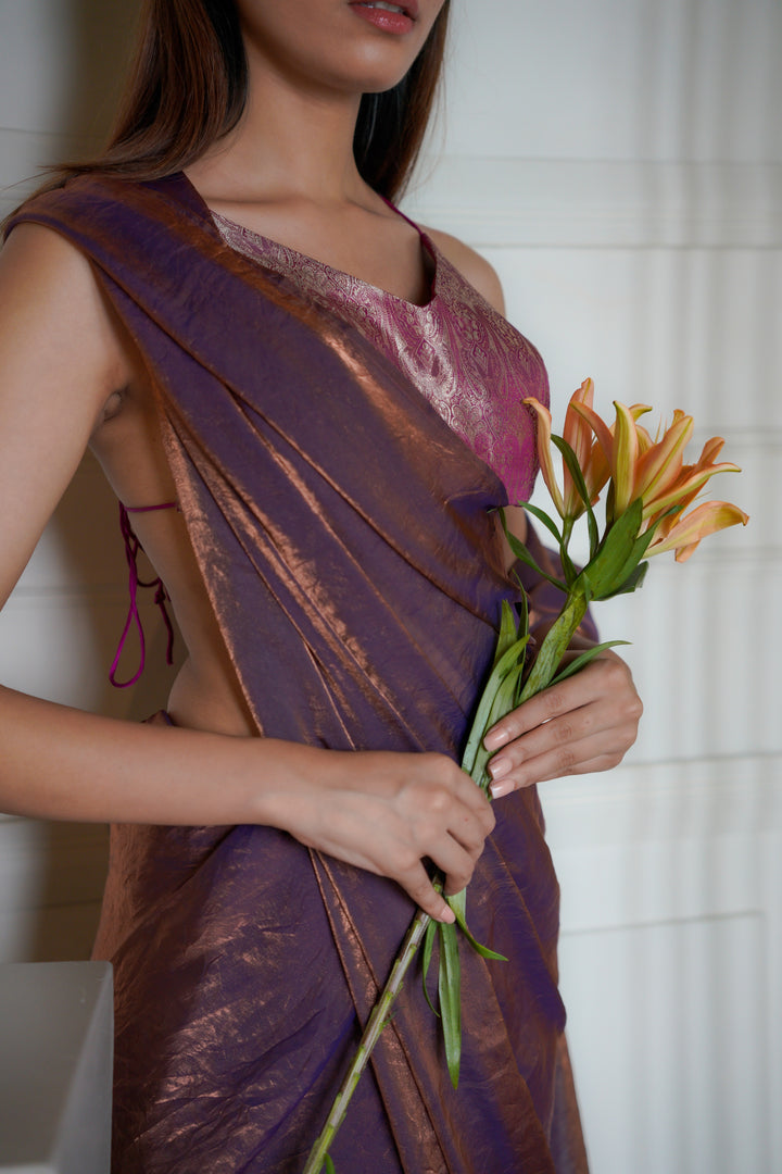 Transform your Purple Potli purchase into a personalized masterpiece. We offer fall, pico, and saree pre-stitching. Reach us on +91-8054955774 for customisations.